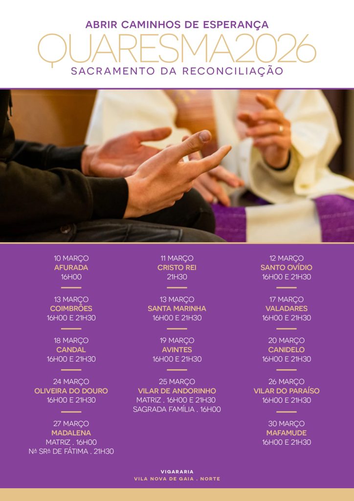 Durante este tempo quaresmal, as paróquias da Vigararia de Vila Nova de Gaia Norte promovem várias celebrações do sacramento da Reconciliação, oferecendo a todos a oportunidade de viver este encontro com a misericórdia de Deus.