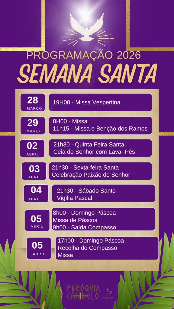 › Igreja Matriz de Sto André › Celebrações Semana Santa e Páscoa Celebrações Semana Santa e Páscoa 25 Março, 2026 por Paróquia Canidelo
